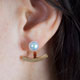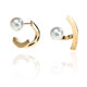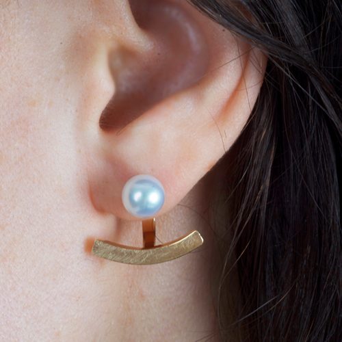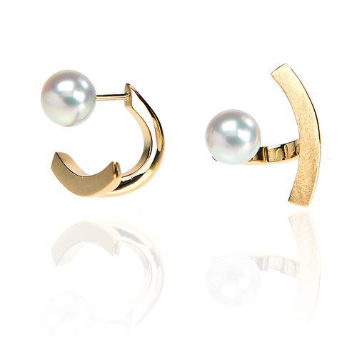 Eine feine Perle dient bei diesem Ohrschmuck als Verschluss, von hinten wird der goldenen Bogen eingesetzt, er schwingt leicht unter dem Ohr und wird von vorne durch die Perle fixiert, raffiniert, locker und leicht mit einer 6,5mm Perle, der pendelnde Bogen hat eine Laenge von 19mm.